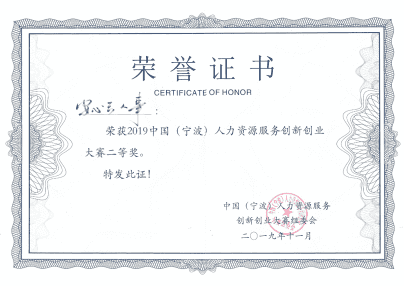 2019(宁波)人力资源服务创新创业大赛二等奖